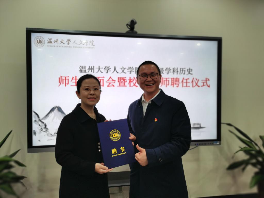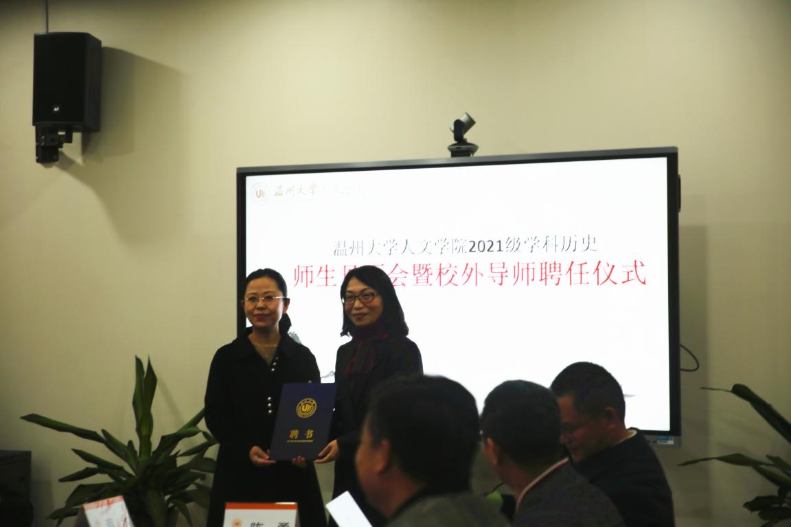 2021年12月8日下午,太阳成官网2021级学科教学(历史)师生见面会暨校外导师聘任仪式在人文楼213会议室如期举行。出席此次聘任仪式的嘉宾有44118太阳成城集团研究生院院长刘玉侠教授、研究生院院长助理王鹏博士、太阳成官网副院长陈源源教授、副院长郑春生教授、学科教学(历史)硕士点负责人刘建国教授、历史系系主任尤育号教授,以及陈安金、蒋金崇、王兴文教授等校内导师,与黄静、徐乃赛、夏陈伟、蔡永、项洪文、章晖、郑小侠、肖云豹等校外导师。2021级学科教学(历史)的硕士研究生们也踊跃参加了此次见面会。