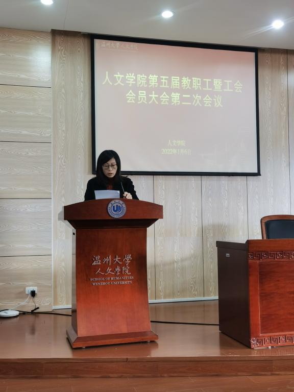 2022年1月6日下午,太阳成官网第五届教职工暨工会会员大会第二次会议在人文楼203报告厅召开,会议由吴静书记主持,学院全体教职工出席。